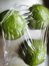 取出面团排气,分割成三等分,滚圆松弛10-15分钟。