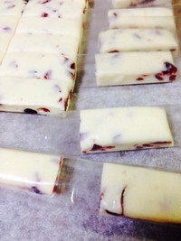 先将蔓越莓切碎、揉进糖里会比较均匀好切
