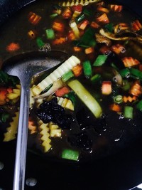 各种配菜,我放了土豆,豆角,青椒,胡萝卜 木耳 蘑菇