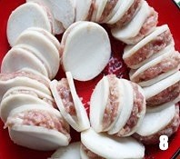 Tip:1、菜谱中的量约可以做两盘照片中的量,可视自家一次要做多少东东调整食材数量。 2、搅馅时加几次调料都要向一个方向搅,这样肉馅会上劲。 3、杏鲍菇易熟,但肉馅熟的时间要长些,第一遍炸时控制好温油,六成热时下入,炸定型后就将火小点,保持四、五成热。炸的时间长些,约在3、4分钟左右,保证里面的肉馅熟透。若油温过高,会颜色很深,看起来表面的馅熟了,但里面的馅还没熟。如果掌握不好时间,可以在炸3分钟时捞出一个撕开看看,没熟再继续炸一会儿。 4、最后炒酱汁时放一点盐可以提汁的甜味,但不要多放,多放盐就咸了,失去甜酸口的本意。后放白醋更加提出甜酸的味道。根据个人喜好调整甜酸的量。