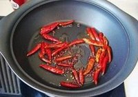 关火后再放入干红辣椒稍炸后一并捞出备用