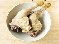 锅里放油烧至7成热,下鸭腿小火煎至表面金黄酥脆即可