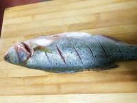 鲈鱼一条,个头不要太大,一斤出头最合适。去鳞去腮去内脏,尤其是腹内的黑膜,清洗干净