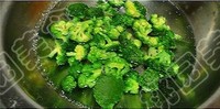 下西兰花大火调入少许盐后速炒、出锅