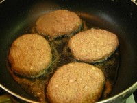 锅里倒入色拉油+黄油,加热后放汉堡排进去煎