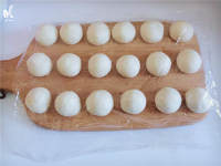 将其等分为18个小面团,每个约24克 分别滚圆后盖保鲜膜松弛15分钟左右