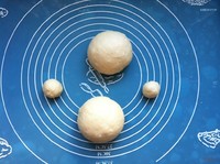 将面团排气,大致分成两份,另取两小球面揉圆,松驰20分钟。 两小球面团是做为圣诞老人帽子上的球和鼻子用,不要大。