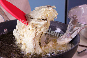 Tip:1. 挂浆的面糊太稀炸出来的鱼会没有焦壳,太厚则反之。 2. 鱼一定要炸透,这样在上桌后才能长时间保持形状。
