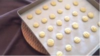分成3g一个的面团,揉圆,用叉子将其压扁,放入预热170度的烤箱,烘烤10分钟(时间仅供参考),烤至表面发黄,取出凉凉