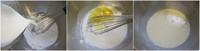 将牛奶倒入面粉中,再加入鸡蛋,全部搅匀至面糊没有结块(做出完美面糊请看Tips)。