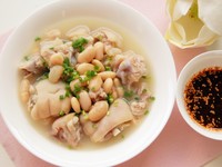 Tip:猪蹄含有丰富的胶质,芸豆含大量的植物蛋白,美容菜。 酸辣调料汁是四川人特别喜欢的口味。 如果在汤里加点四川酸菜,就是老妈蹄花店里的酸汤蹄花。