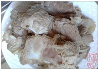 烧开水再将洗好的肉或是骨头、鸡放进去,翻动均匀后,倒掉水用清水冲洗一下,这个过程叫飞水。