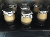 布丁瓶表面加盖锡纸、这样烤出的的布丁表面细嫩柔滑。入烤箱、水浴、165度、35分钟。(烤盘里的水一定要加的满满的哦!)