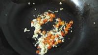 锅里下油烧热以后放蒜蓉、小米椒爆香