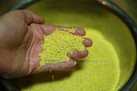配料:黄粟米1斤,红枣15颗,粽叶适量,棉线适量 1斤米大概可以包15个左右的粽子 黄粟米外表看起来有点像小米,蒸熟后是和糯米一样的粘粘的