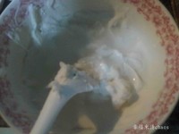 蒸熟的米糊加入100毫升水,用手动打蛋器不停搅拌均匀至无大颗粒状,制成生熟粉浆;