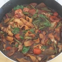 Tip:1,水不要太多,不然汤汁会太多,控制火候,糊锅了就不好吃了。 2,盐味要控制好,因为虾和鱼都提前腌制了,加上酱都会比较咸,所以一定要尝好再看情况放盐。 3,出锅前酱汁一定要翻匀,我在上桌前尝了一下,以为淡了,结果上桌以后下面的味道很浓郁。 4,甜味和辣味很重要,喜欢辣的可以加一些干辣椒,甜味基本冰糖和甜面酱就可以满足,喜欢甜的就多加冰糖。 祝大家做出好吃的焖锅。记得来晒晒。