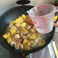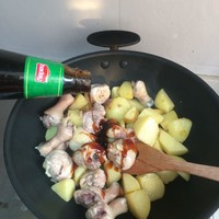 Tip:1、汆烫后的鸡腿用冷水冲洗; 2、土豆煎得好,焖的时候才不会松散,适当可小火,慢慢煎出金黄感; 3、焖的时候最好不要下盐,等下老抽时再一起下,盐的作用就是吊味; 4、蚝油要比生抽多,因为PO 主比较爱吃甜