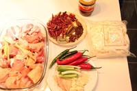 Tip:⌘ 鸡的大小最好选择在1-1.5公斤(2人份)或2-3公斤(4人份);若是一个人吃则可以选择鸡腿肉和鸡翅(做普通盘一盘的量即可)。 ⌘ 最好选择整只鸡,不要为了要求鸡肉各个部位的质量而只选择记得某些部位(如鸡腿、鸡翅等)实践证明,整只烹饪出的效果好(头和屁股部位可切除)。 ⌘ 鸡剁成块状,不亦过大(不容易入味儿)切忌过小(容易“糊锅”)。我今个的剁的有点大了,因为比较喜欢大口吃肉,哈哈~ ⌘ 干辣椒,这里要特别说明,辣椒的选取很关键,切忌选择那种短的“朝天椒”要线状辣椒晾晒成的“干辣椒”(大点的农贸市场干货调料处都有卖的)依据个人吃辣水平来定,一般100克即可。 ⌘ 切忌不要选择圆头状菜椒,要细长尖状青椒 ⌘ 油不亦过多但也不能太少,这个量没办法用详细告诉大家,一般说来多了要比少了好; ⌘ 糖选择稍微细一点颗粒的,颗粒大的不容易和油完全溶 ⌘ 蒜分别压扁和切成沫状,备两次使用(压扁的5-7个即可,沫状3-5个即可)葱蒜的多少依据个人口味调节,但实践证明,适当多一些味道更佳; ⌘ 土豆等锅中放入水后再切也来的及,入锅前微微用凉水冲洗一遍即可。 ⌘ 切忌将土豆翻搅到锅底或和鸡肉混合在一起,那样非常容易糊锅, 一块块的摆放在鸡肉上。 ⌘ 如果没有皮带面,可以像我一样,用河粉来代替下。