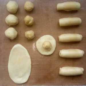 把油酥包进油皮里(油皮在外面噢),10个步骤一样,把面团擀长,圈起来,放一旁~