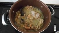 待水煮开后(换砂锅),倒入切好的墨鱼干和骨头,小火煮1小时