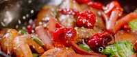 将灯笼椒,干辣椒,姜片煸香。加入酱料翻炒。