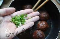 放少许老抽,老抽的量看你肉圆子做的咸淡哈,偏咸的话,就少放点酱油