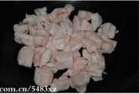 猪板油用流动的清水冲净,改刀成小块
