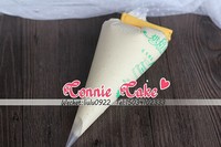 裱花袋剪一个小口,在烤盘中挤出你认为合适(也就是适合孩子的)宽度及长度。