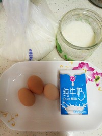 在蛋黄里加入4汤勺面粉和4汤勺牛奶~