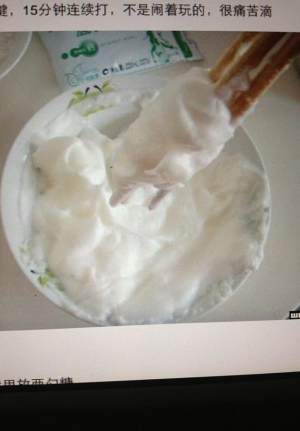 15分钟左右,就会是奶油状,而且筷子上的不会掉下这个比较关键,15分钟继续打,很类的,不是闹着玩的