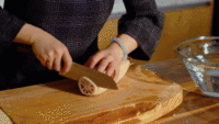 藕切连刀片,第一刀不完全切断开,第二刀再切断