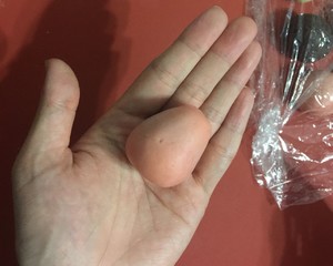 取一个粉色面团,揉搓至水滴状。