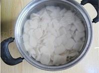 然后将面粉和面片混合均匀备用。这样做,是为了防面片粘在一起