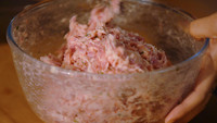 搅拌肉馅到肉馅很黏,感觉搅不动的时候就可以了