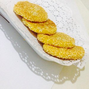 把小饼两面都粘满白芝麻 粘满芝麻不仅让饼饼更香而且在烙的时候也不容易糊