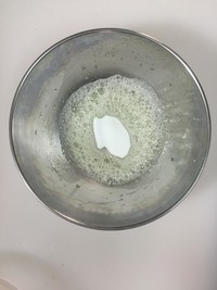 继续高速搅打,使蛋白变得粘稠发白并开始膨胀。再加入20克细砂糖和数滴柠檬汁。