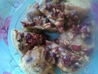 红枣切丁,一半与面糊混均,一半撒在面上。