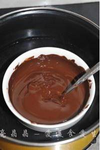 取一个小锅子,锅中放水加热至50度左右(用手摸一下,不会很烫手的温度),关火。把巧克力放在碗里,碗坐在锅中的热水中