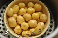 Tip:1、土豆最好是这种小土豆哈,大土豆只能切块 2、土豆洗干净。去皮不去皮都可以。看个人喜欢哈。做这个我一般不喜欢去皮 3、土豆蒸熟或者放少许清水煮熟都可以。我一般都是蒸熟 4、煎土豆的时候喜欢放点蒜粒跟干辣椒,会更有味些 5、煎的焦的程度自己看着办哈。随意。