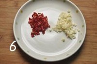 蒜瓣剥好剁蒜泥。干辣椒剁碎