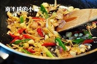 再下鱿鱼翻炒片刻,然后点入少许香醋
