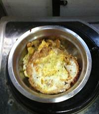 1鸡蛋煎好。芝麻可以下芝麻一起煎。