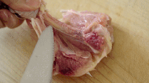 刀沿着骨头把肉划开