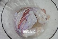 每500克牛肉,放4克嫩肉粉,再放100毫升的清水搅匀后,放入牛肉,泡至2小时后,用清水冲净待用