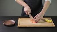 将洗好的香菇切成片 PS:给宝宝吃尽量的切薄一点哦,这样也容易熟