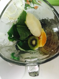 2号蔬果汁:菠萝50克,黄瓜80克,西芹42.5克,豌豆苗22.5克,油麦菜37.5克,啤酒酵母22.5毫升,坚果22.5毫升,水75毫升。 建议饮用时间:上午10-11点 2号蔬果汁喝后感:长的跟1号差不多,也很容易入口。