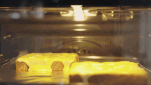 取出吐司。 熔岩乳酪表面会有非常漂亮的焦色