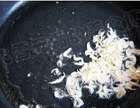 鸡蛋打散后,搅拌成碎粒状。取出备用
