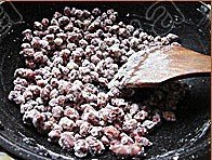 锅小火烘干,将花生米放入锅内,用小火将其焙熟,取出晾凉